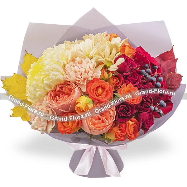 ОТЗЫВЫ О БУКЕТЕ «Осенний мотив - букет из красных роз и хризантем»