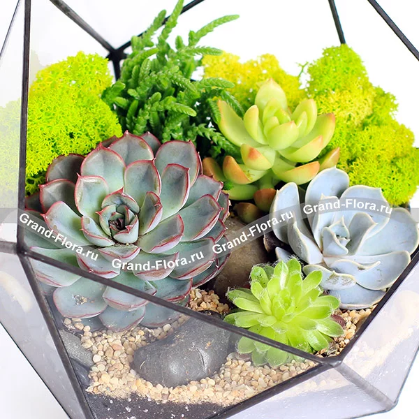 Стандартный: флорариум, эхеверия, молодило, седум, крассула.